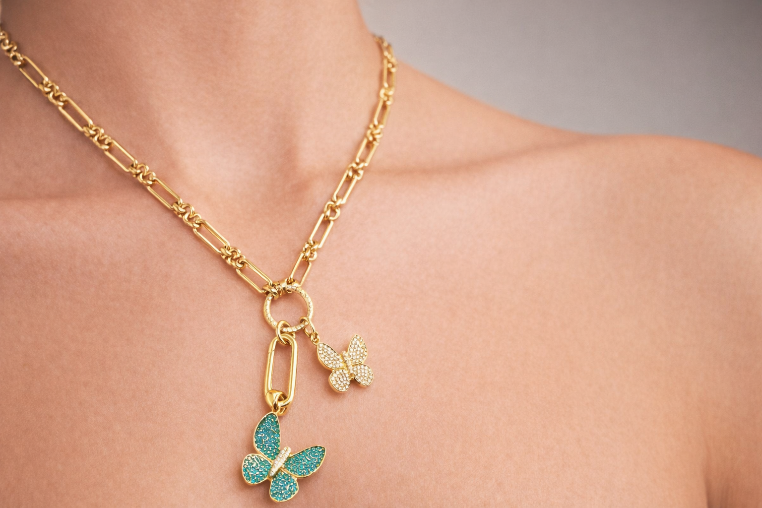 GEMSTONE DIVIDED BUTTERFLY NECKLACE