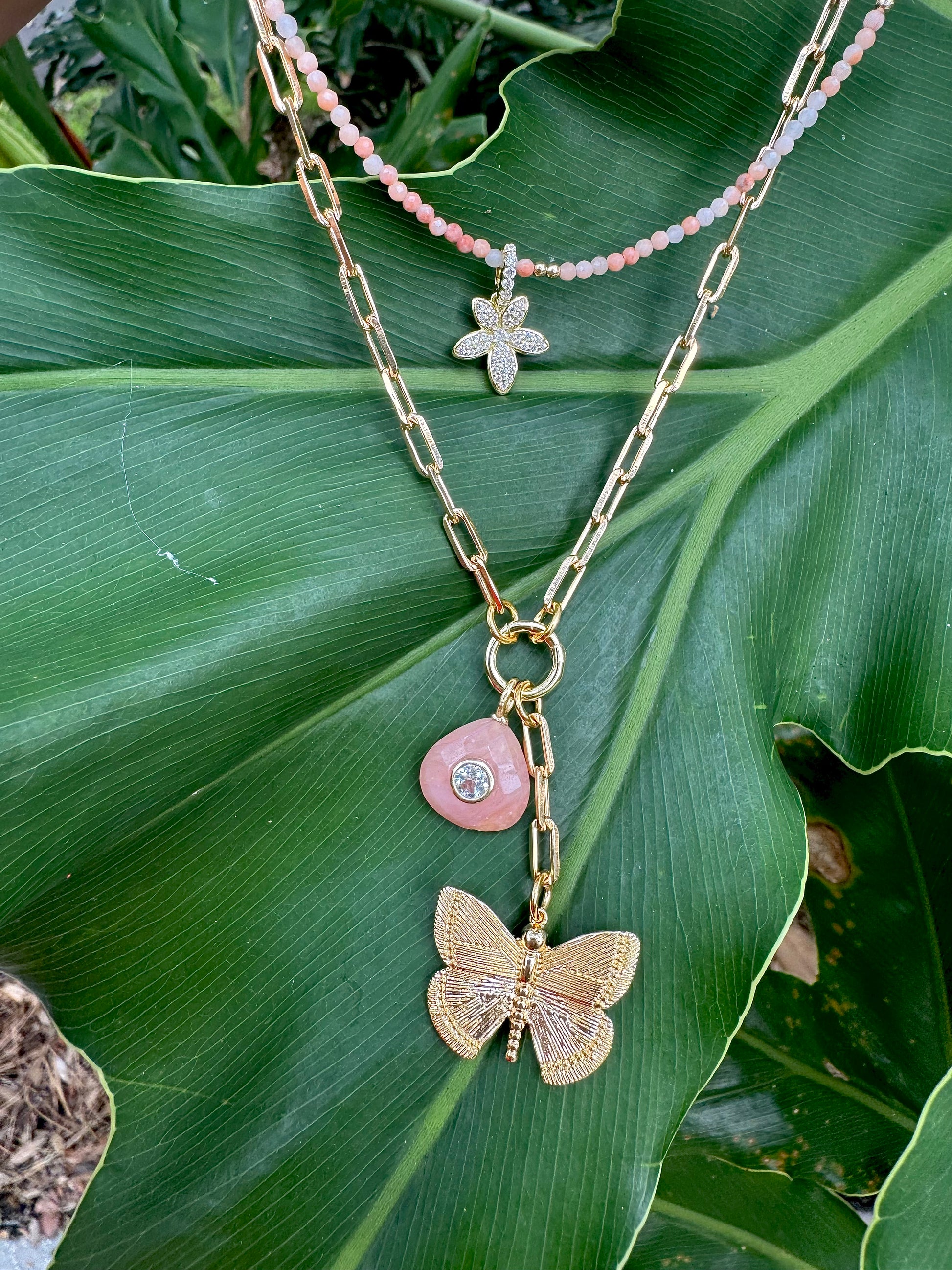 PAPERCLIP CHAIN GEMSTONE 2 CHARM NECKLACE